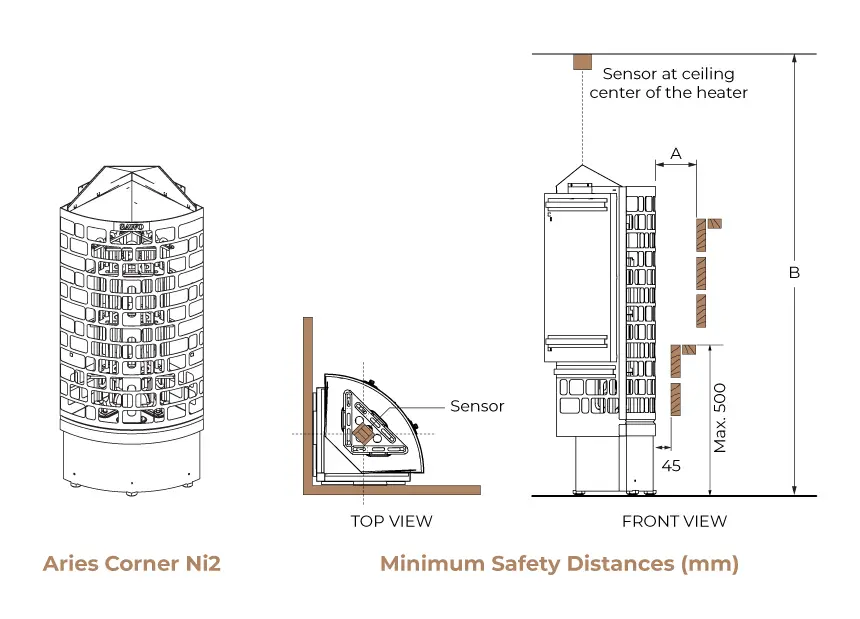 The Aries Corner is a minimalist yet stylish space-saving heater. It’s designed for seamless corner installation to maximize the space of any sauna room and the boost the comfort of bathers for thoroughly rejuvenating sauna sessions. Its built-in stone spacer ensures shorter heating time for the sauna stones and a longer life span for the heating elements.