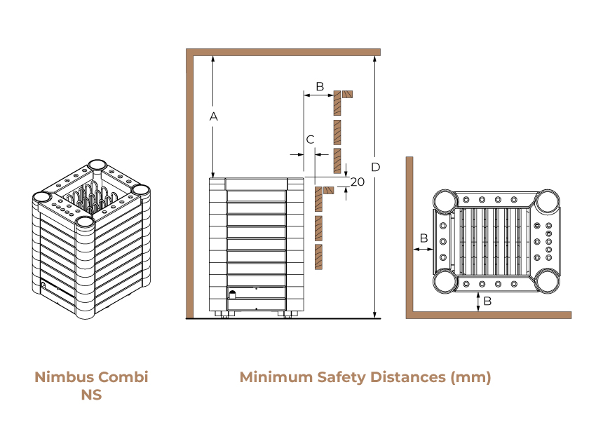 The Nimbus Combi complements the hours of consistent heat generated and maintained by the Nimbus heater. With its separate water tank, it ramps up the amount of steam generated for the perfect balance of heat and humidity. Like the Nimbus, the Combi is compatible with the Saunova and Innova controls (NS).