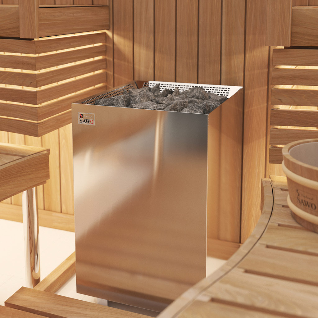 The Nordex Floor heater is sleek and spare in aesthetic and efficient in performance. It distributes warmth through convection or radiant heating methods and incorporates advanced energy-saving technology. It is designed for regular and frequent use, ensuring reduced energy and maintenance costs. and can accommodate 40kg to 100kg of sauna stones.