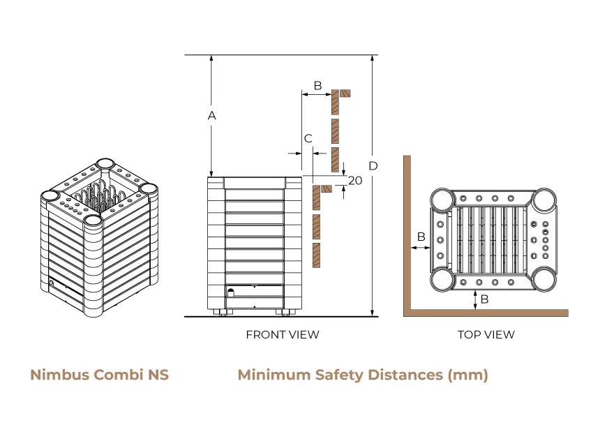 The Nimbus Combi complements the hours of consistent heat generated and maintained by the Nimbus heater. With its separate water tank, it ramps up the amount of steam generated for the perfect balance of heat and humidity. Like the Nimbus, the Combi is compatible with the Saunova and Innova controls (NS).