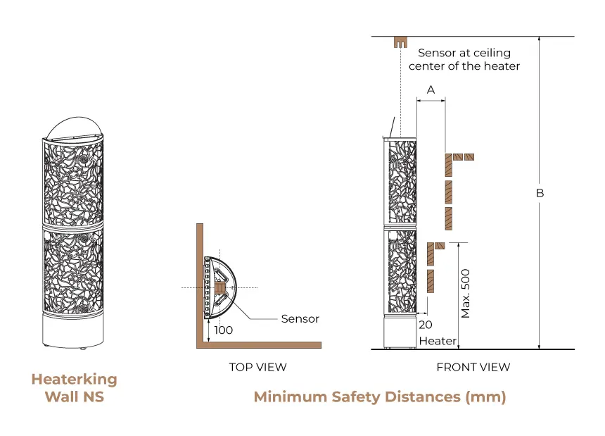 The Heaterking Wall heater by Stefan Lindfors gives king-size heat while saving sauna space. Its impressive height ensures it can hold a massive amount of stones and generate consistent, evenly distributed heat. Bathers can enjoy either smooth or sharp and dry heat by throwing water either onto the bottom or the top of the pillar. Like all Heaterkings, the Wall model’s unique Junglefire-pattern stainless steel casing imbues any sauna room with bold elegance.