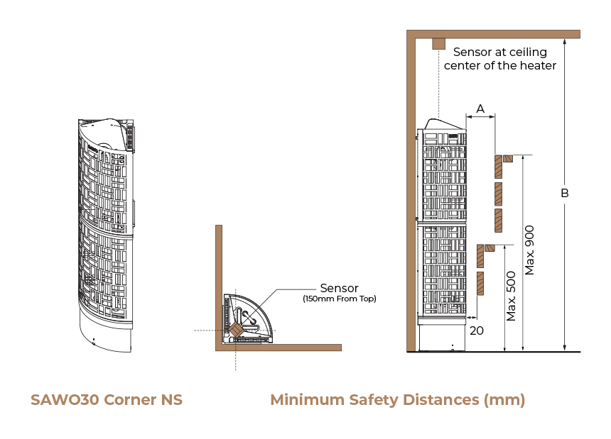 The SAWO30 Corner Black is designed for sauna layouts where space is at a premium. Like all Tower heaters, its height ensures it delivers evenly distributed heat, from bottom to top. The SAWO30 Corner also comes with a removable stone spacer, which offers two setup options of (1) faster heating, energy efficiency, and a hotter sauna with the spacer, or (2) room for more stones to generate more steam, milder temperature, and energy savings in a commercial setup without the spacer.
